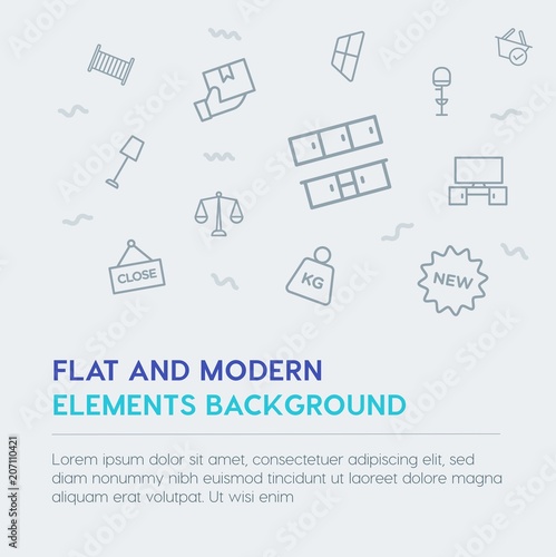 shopping, furniture, housekeeping outline vector icons and elements background concept on grey background.Multipurpose use on websites, presentations, brochures and more