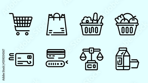 Shopping Vector Icon Set for E-commerce, Retail, Grocery Store, Cart, Payment, Scale, and Delivery Icons for Website and App Design