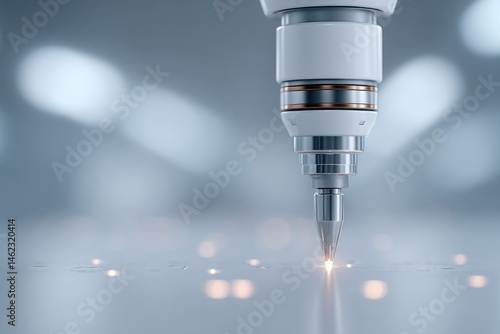 show robotic surgical arm delicately poised over operating table wielding sleek scalpel with precision in state-of-the-art