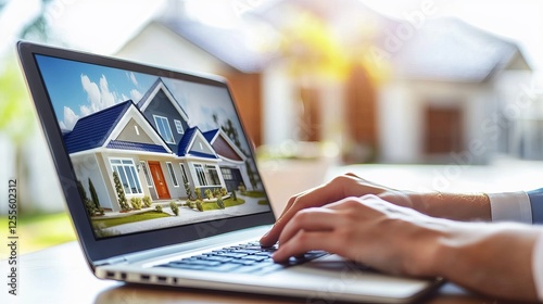 Showcasing a laptop on a modern office desk urban workspace digital display contemporary environment focused perspective technology innovation