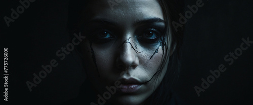 shows a close-up of a woman's face
