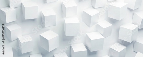 Shuffled white cube boxes covering the entire screen with empty space , box, industrial, minimalist