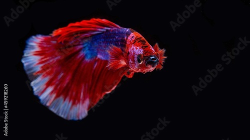 Siamese betta fish is the national fish of Thailand. It is a fighter fish. The distinctive feature of this figure has three colors: white-red-blue.
