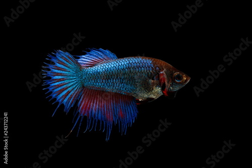 Siamese fighting fish colorful fish on a black background, Halfmoon Betta.