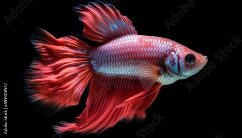 Siamese fighting fish swimming in dark water, displaying vibrant colors generated by AI