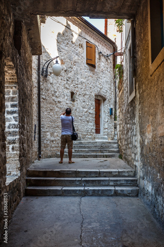 SIBENIK / CROATIA - AUGUST 2015: Narrow street in the historic centre of Sibenik town, Croatia