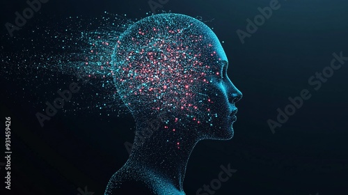 Side view of a humanoid head with a digital data stream entering the brain representing AI learning and adaptation