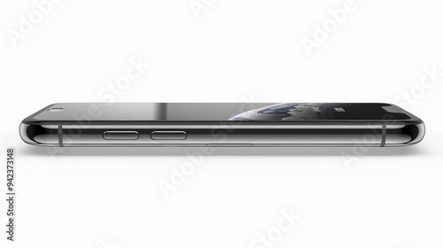 Side view of a phone isolated, showcasing its thin profile and buttons.