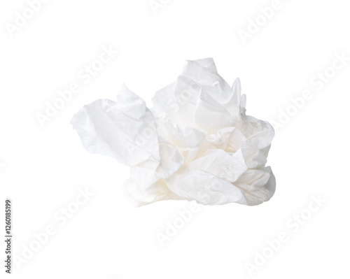 Side view of screwed or crumpled white tissue paper ball isolated on white background with clipping path