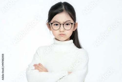 Sign and gesture concept with an angry little girl on white background