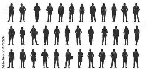 Silhouette Collection of Business Professionals in Various Poses and Attire for Corporate Design