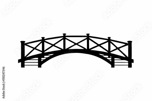 Silhouette Design of an Old Wooden Bridge with Rustic Planks and Vintage Details in a Minimalist Style