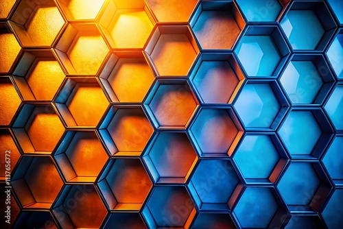 Silhouette Hexagon Art: Blue Orange Abstract Geometric Background, Colorful Shape Design