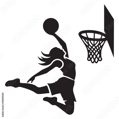 silhouette illustration of a basketball player performing a slam dunk