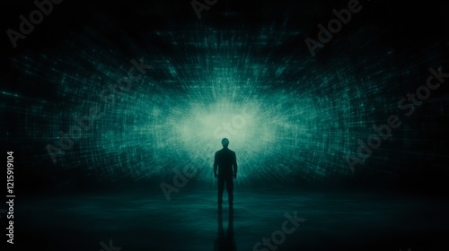 Silhouette Man Facing Digital Data Stream Light
