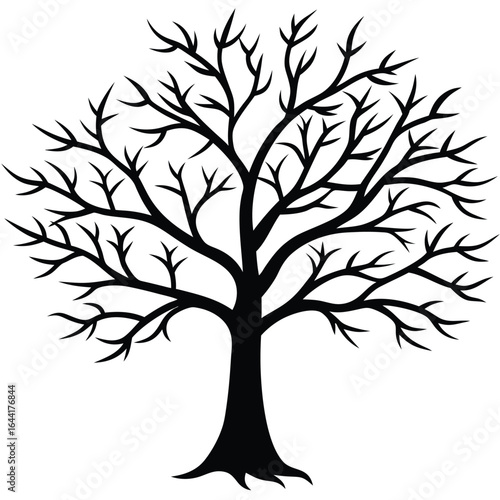 Silhouette of a bare deciduous tree with intricate branches on white background vector illustration