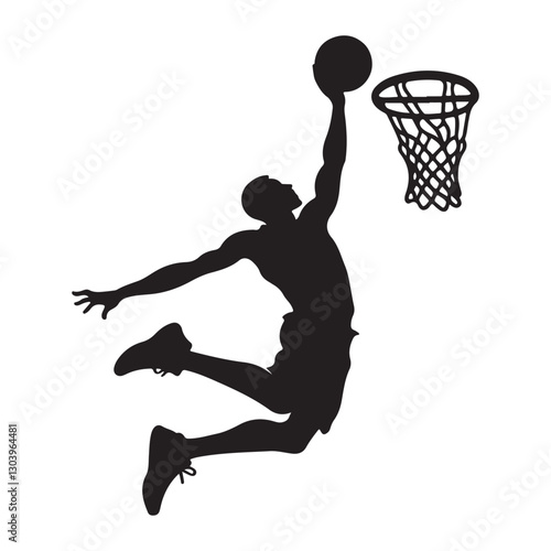 Silhouette of a Basketball Player Dunking the Ball Towards Hoop