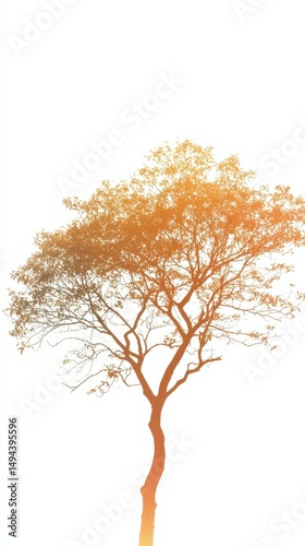 Silhouette of a deciduous tree against a bright sky, with leaves and branches in autumn color