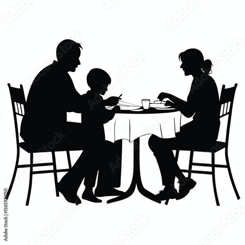 Silhouette of a family enjoying a meal together at a table