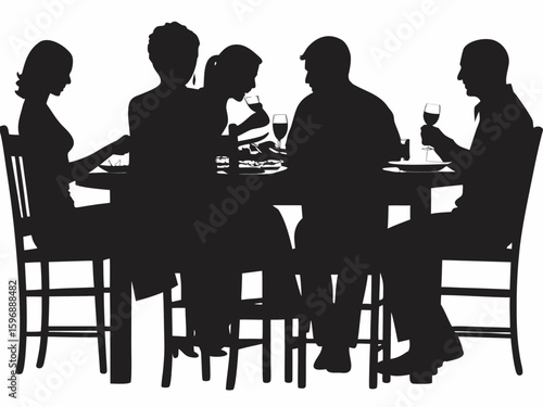 Silhouette of a group of people dining at a table with wine glasses and plates of food together indoors created with generated ai
