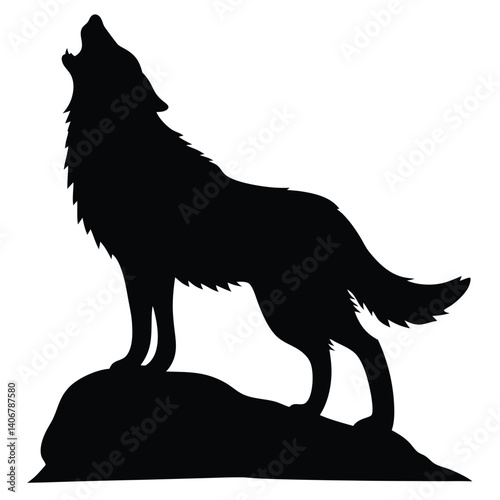 Silhouette of a Howling Wolf Standing on a Rock with Transparent Background