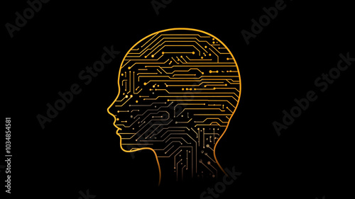 Silhouette of a human head filled with intricate circuit patterns against a black background
