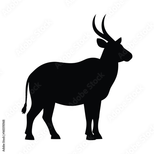 Silhouette of a majestic antelope with curved horns standing on a white background