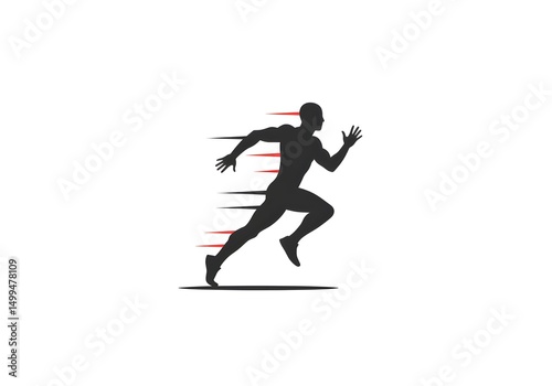 Silhouette of a man running with red speed lines on a white background illustration image design