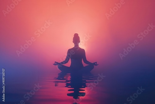 silhouette of a person in a serene lotus position surrounded by a soft ethereal glow tranquil scene set against a gradient background embodying inner peace and mindfulness
