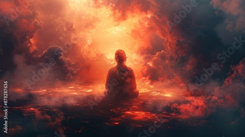 Silhouette of a Person Meditating in a Surreal Sky