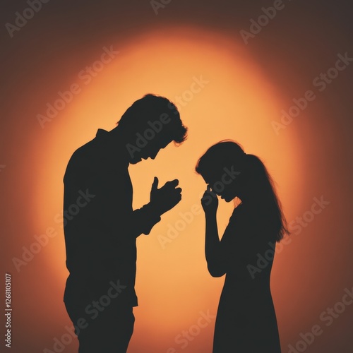 Silhouette of a sad couple with relationship issues.