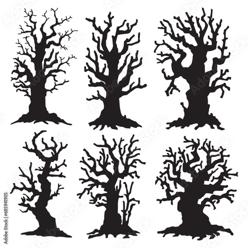 silhouette of a tree isolated. Isolated Dead tree on the white background. Dead tree silhouettes.
