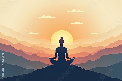 Silhouette of a Woman Meditating on a Mountaintop at Sunrise