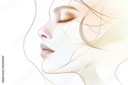Silhouette of a womans face with golden ratio lines illustrating beauty and proportion. Generative AI