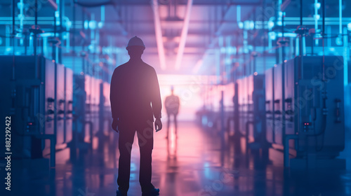 Silhouette of an energy worker with smart grid technology, representing digital transformation in energy