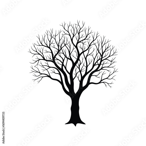 Silhouette of bare winter tree with intricate branches reaching skyward vector