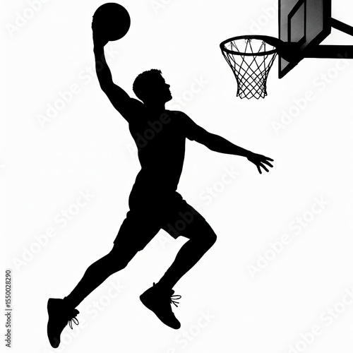 Silhouette of basketball player performing slam dunk against hoop