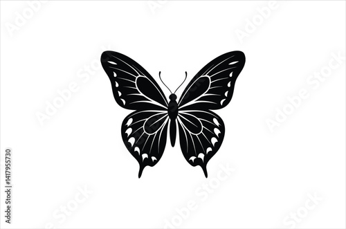 Silhouette of butterfly, Set of butterflies cartoon of different shapes, Monochrome vector illustration, Collection of Hand Drawn Butterfly icons on white background.