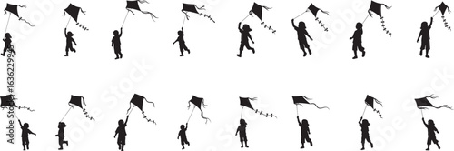 Silhouette of children flying kites vector illustration design for print and web usage art graphic