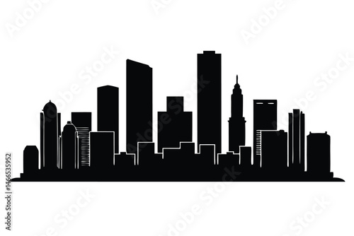 Silhouette of city skyscrapers showcases a modern architectural skyline against a plain background
