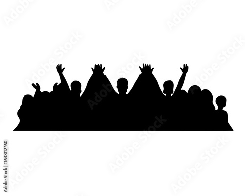 Silhouette of Crowd with Hands Up Expressing Enthusiasm at a Concert