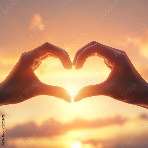 Silhouette of hands forming a heart shape against a vibrant sunset.