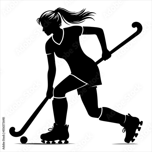 Silhouette of hockey player with a hockey stick Vector illustration, vector black color silhouette
