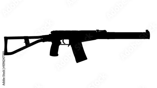 silhouette of side view of russian val assault rifle with folding stock on a white background