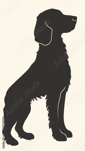 Silhouette of sitting dog with curly fur profile minimalist black vector illustration on light background pet animal portrait design element