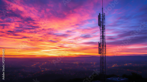 Silhouette of Telecom tower. Telecommunication digital technology tower internet mast