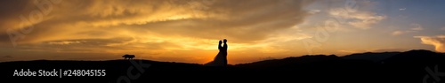 Silhouette of young married couple at sunset.Valentine's day concept.
