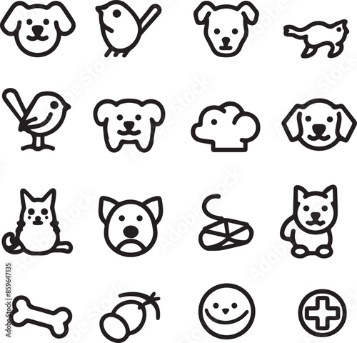Silhouette Pets web icons in line style. Dog, cat, rabbit, hamster, bird, bone, pets, vet help. Vector illustration with White Background