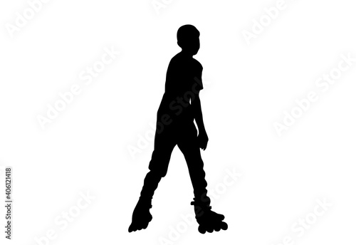 Silhouette Roller Blade Skate kids , boy play spin scooter with white background with clipping path.