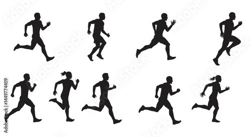 Silhouette Runners Diverse Running Poses Vector Illustration